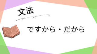 文法 ですから / だから意味(理由や原因の説明に使う。)接続a(原因/理由)。  ですから/だから   b(当然の結果/判断)。例文今日は忙しいです。ですから行けません。雨が降っています。ですからタクシーで行きます。電車が止まりました。で...